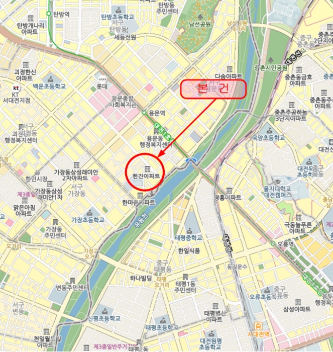 1) À§Ä¡ ¹× ÁÖÀ§È¯°æ=º»°ÇÀº ´ëÀü±¤¿ª½Ã ¼±¸ ¿ë¹®µ¿ ¼ÒÀç "´ëÀü»ê¾÷Á¤º¸°íµîÇб³" ºÏµ¿Ãø Àαٿ¡ À§Ä¡Çϸç, ÁÖÀ§´Â ¾ÆÆÄÆ®´ÜÁö, °øµ¿ÁÖÅÃ, ´Üµ¶ÁÖÅÃ, ¼Ò±Ô¸ð Á¡Æ÷, Çб³ µîÀ¸·Î Çü¼ºµÈ Áö¿ªÀ¸·Î¼, Á¦¹Ý ÁÖÀ§È¯°æÀº º¸ÅëÀÓ.