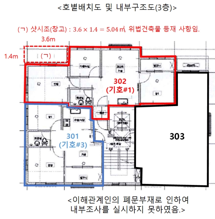 10) ±âŸÂü°í»çÇ×(ÀÓ´ë°ü·Ê ¹× ±âŸ)=º»°Ç Áß ±âÈ£#1(302È£)´Â ÁýÇÕ°ÇÃ๰´ëÀå ÀüÀ¯ºÎ»ó Á¦½Ã¿Ü°Ç¹° (¤¡)À¸·Î ÀÎÇÏ¿© À§¹ý°ÇÃ๰·Î µîÀçµÇ¾î ÀÖÀ½.