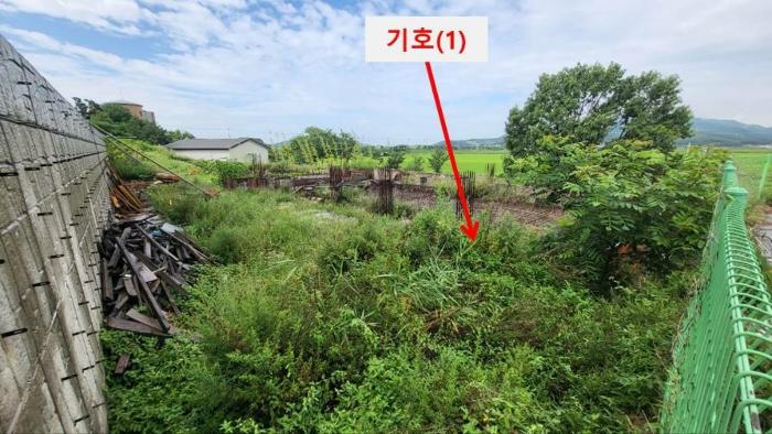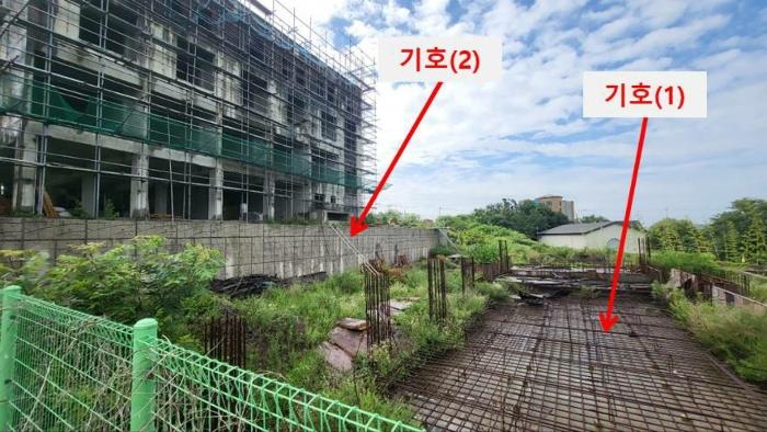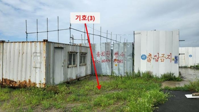 Çã°¡¸¦ µæÇÑ ÈÄ °ø»ç Áß Áß´ÜµÈ ºÎÁöÀ̸ç, ±âÈ£(3)ÅäÁö´Â ±âÈ£(1),(2)ÅäÁö ÁøÃâÀÔÀ» À§ÇÑ