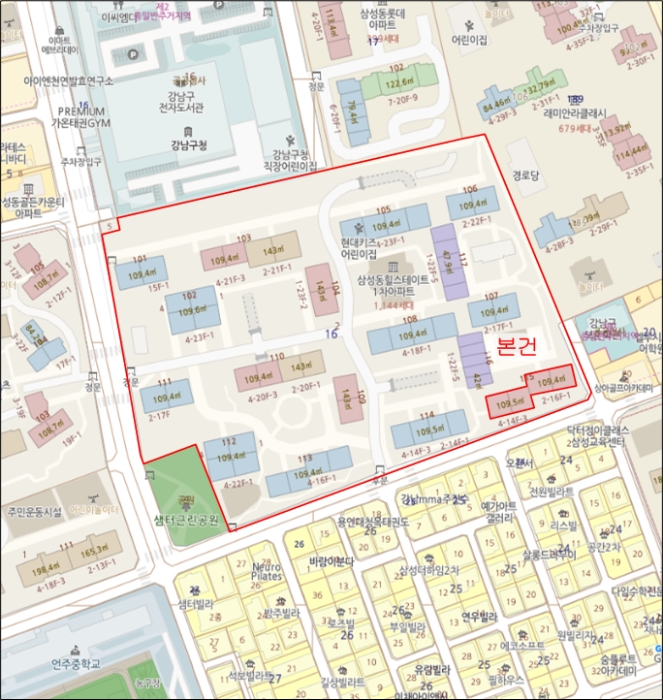 1) À§Ä¡ ¹× ÁÖÀ§È¯°æ=´ë»ó¹°°ÇÀº ¼¿ï½Ã °³²±¸ »ï¼ºµ¿ ¼ÒÀç "°³²±¸Ã»" ³²Ãø Àαٿ¡ ¼ÒÀçÇϸç, ÁÖÀ§´Â ¾ÆÆÄÆ®´ÜÁö, ´Ù¼¼´ëÁÖÅÃ, ±Ù¸°»ýȰ½Ã¼³, Çб³, °ø¿ø µîÀÌ ¼ÒÀçÇÏ´Â Áö¿ªÀ¸·Î¼ Á¦¹Ý ÁÖÀ§È¯°æÀº ´ëü·Î º¸ÅëÀÔ´Ï´Ù.