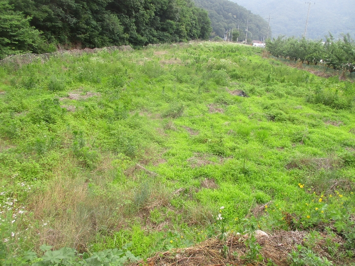 (2): ºÎÁ¤Çü ÅäÁö·Î¼ ÀÚü Áö¹ÝÀº ´ëü·Î µî°í ÆòźÇϸç, ÈÞ°æÁöÀÓ. º»°Ç ÅäÁö Áß ¼Ãø ºÎºÐÀº ³²Ãø Áö¹æµµ·Î¿Í ´ëü·Î µî°íÀ̳ª µ¿Ãø ºÎºÐÀº ³²Ãø Áö¹æµµ·Îº¸´Ù ´Ù¼Ò ³ôÀº »óÅÂÀÓ. ÀϺο¡ µÎ¸¨³ª¹« À¯¸ñÀÌ ¼ÒÀçÇϳª °ü¸®°¡ µÇÁö ¾ÊÀº »óÅÂÀÓ.