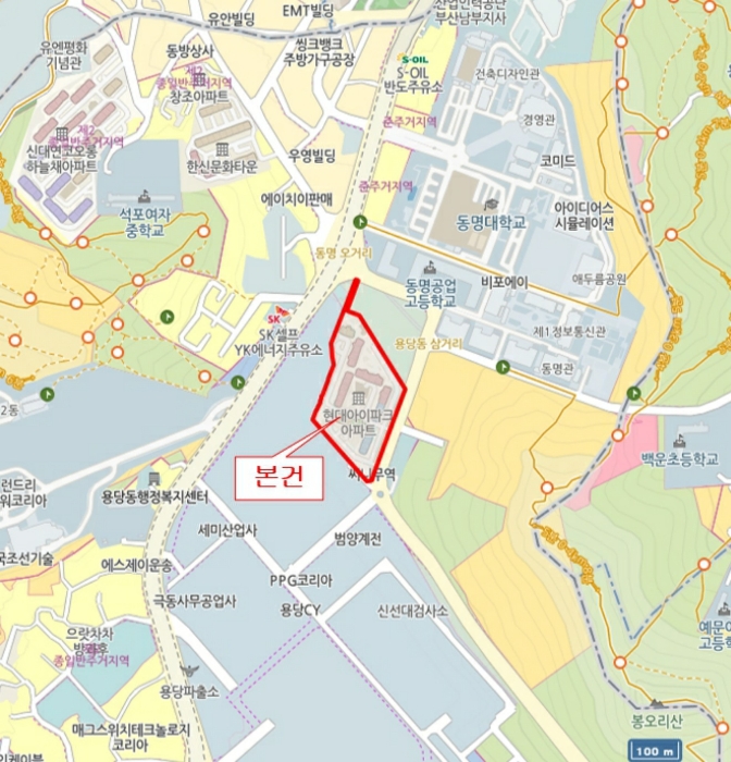 1) À§Ä¡ ¹× ÁÖÀ§È¯°æ=º»°ÇÀº ºÎ»ê±¤¿ª½Ã ³²±¸ ¿ë´çµ¿ ¼ÒÀç "µ¿¸í°ø¾÷°íµîÇб³"³²¼Ãø Àαٿ¡ À§Ä¡ÇÏ´Â Çö´ë¾ÆÀÌÆÄÅ© Á¦103µ¿ Á¦16Ãþ Á¦1604È£·Î¼, ÁÖÀ§´Â ÀÚµ¿Â÷¸Å¸Å´ÜÁö, Çб³, ½Å¼±´ëºÎµÎ µîÀ¸·Î Çü¼ºµÈ Áö¿ªÀÓ.