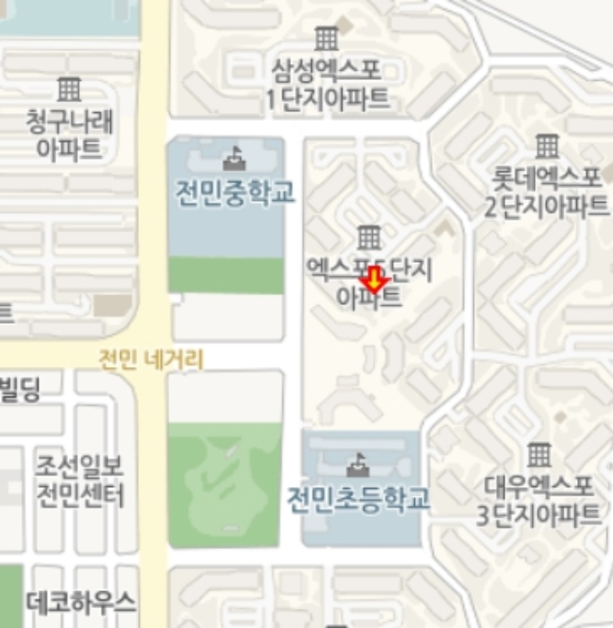 1) À§Ä¡ ¹× ÁÖÀ§È¯°æ=º»°ÇÀº ´ëÀü±¤¿ª½Ã À¯¼º±¸ Àü¹Îµ¿ ¼ÒÀç "´ëÀüÀü¹ÎÃʵîÇб³" ºÏµ¿Ãø Àαٿ¡ À§Ä¡ÇÏ´Â "¿¢½ºÆ÷¾ÆÆÄÆ®" Á¦208µ¿ Á¦3Ãþ Á¦303È£·Î¼, ÁÖÀ§´Â ¾ÆÆÄÆ®´ÜÁö, ±Ù¸°»ýȰ½Ã¼³, °¢±Þ ±³À°½Ã¼³ ¹× ±Ù¸°°ø¿ø µîÀÌ ¼ÒÀçÇÏ´Â Áö¿ªÀÓ.