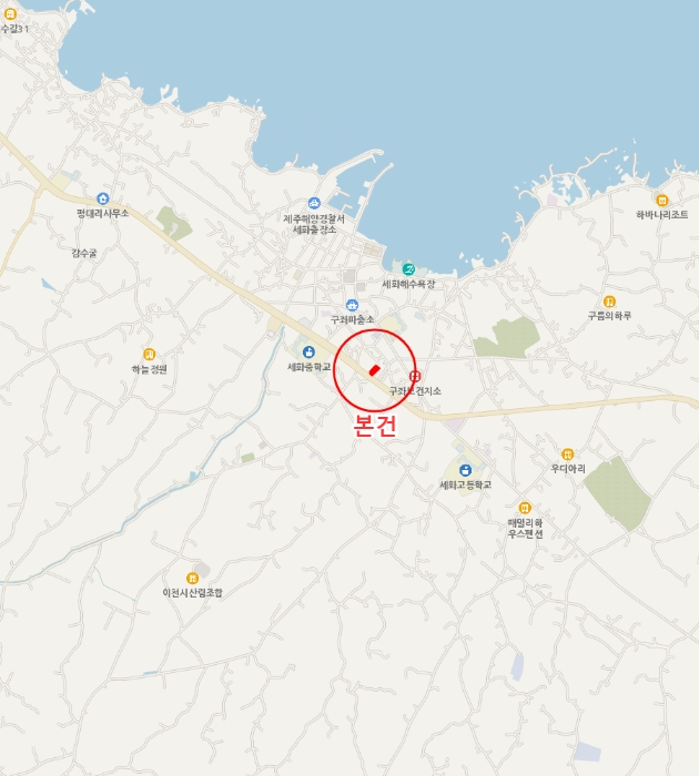1) À§Ä¡ ¹× ÁÖÀ§È¯°æ=º»°ÇÀº Á¦ÁÖÆ¯º°ÀÚÄ¡µµ Á¦Áֽà ±¸ÁÂÀ¾ ¼¼È¸® ¼ÒÀç "¼¼È°íµîÇб³" ºÏ¼Ãø ±Ù°Å¸®¿¡ À§Ä¡Çϸç, ÁÖÀ§´Â ´Üµ¶ÁÖÅÃ, °øµ¿ÁÖÅÃ, °¢Á¾ ±Ù¸°»ýȰ½Ã¼³ ¹× ³ó°æÁö µîÀ¸·Î Çü¼ºµÇ¾î ÀÖÀ½.