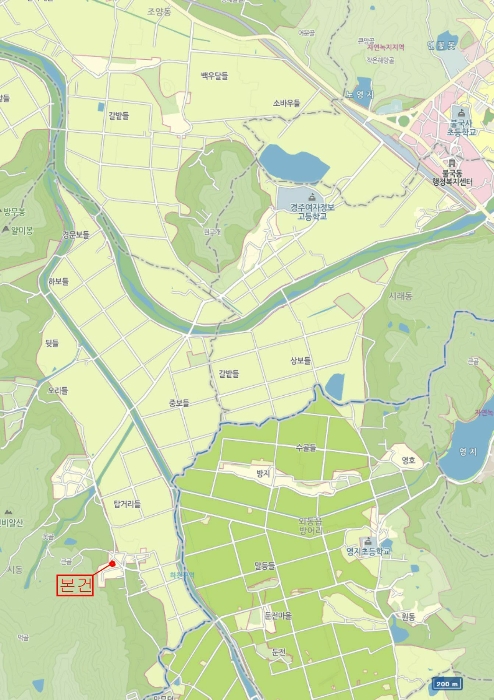 1) À§Ä¡ ¹× ÁÖÀ§È¯°æ=º»°ÇÀº °æ»óºÏµµ °æÁֽà ½Ãµ¿ "»û´ëÀϸ¶À»" ³»¿¡ À§Ä¡Çϸç, ÁÖÀ§´Â °æÁֽà ¿Ü°ûÀÇ ³óÃÌÁö¿ªÀ¸·Î ³ó°æÁö¿Í ³óÃÌÃë¶ô, Ãà»ç µîÀ¸·Î Çü¼ºµÇ¾î ÀÖÀ¸¸ç ȯ°æ ÄèÀûÇÔ.
