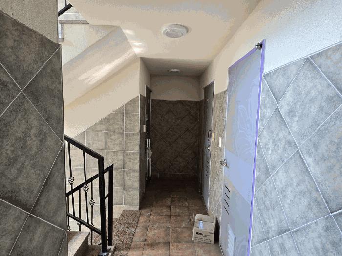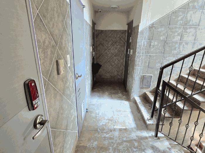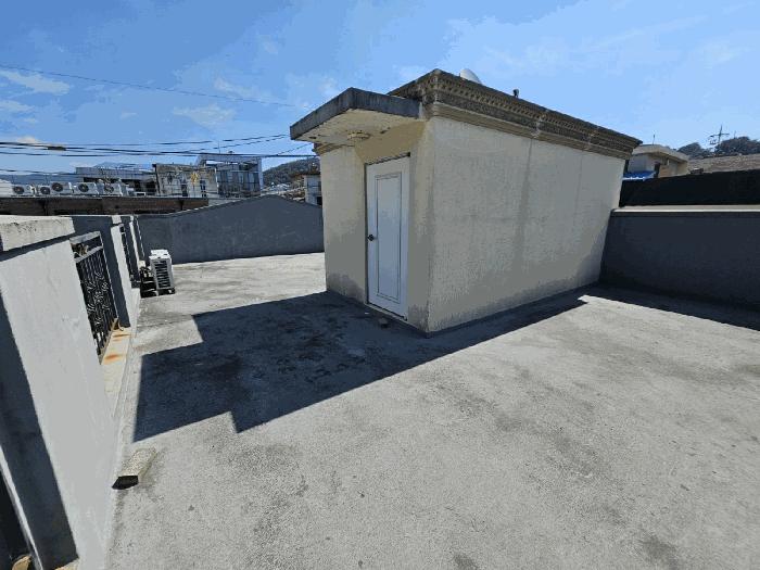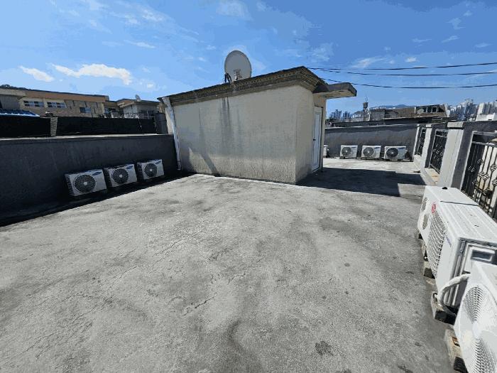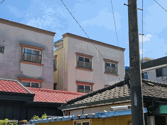 1~3Ãþ »çÀÌÀÇ °è´ÜÀ¸·Î º®À» Ÿ°í ¹°¹æ¿ïÀÌ ¶³¾îÁö°í ÀÖ°í, ÀϺΠȣ½ÇÀÇ ¿ÜºÎ âƲ ¾Æ·¡·Î ¹°¹æ¿ïÀÌ ¶³¾îÁö°í ÀÖ´Â »óÅÂÀÓ.
