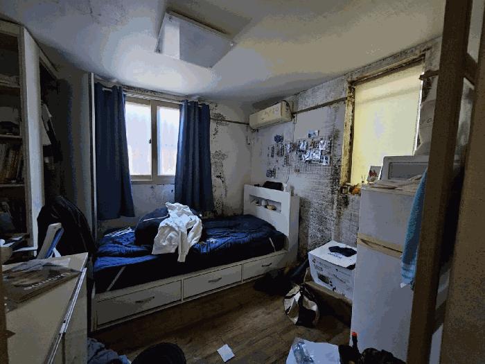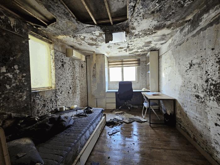 ³»ºÎ°¡ È®ÀÎµÈ 103È£, 202È£, 203È£´Â °¢ ³»ºÎ º® Àüü¿¡ °õÆÎÀ̰¡ ÀÖ°í, º®°ú õÀåÀÇ º®Áö°¡ ¶³¾îÁ® ÀÖÀ¸¸ç, ħ´ëµµ ¹°±â·Î
