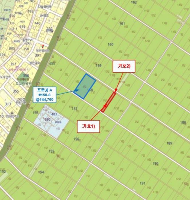´ë»ó ¹°°Ç ±âÈ£1) ³²¼ÃøÀ¸·Î ³ëÆø 3m³»¿ÜÀÇ ³ó·Î ¹× ±âÈ£2) ºÏµ¿ÃøÀ¸·Î ³ëÆø ¾à4m³»¿ÜÀÇ ³ó·Î°¡ ¼ÒÀçÇÕ´Ï´Ù.