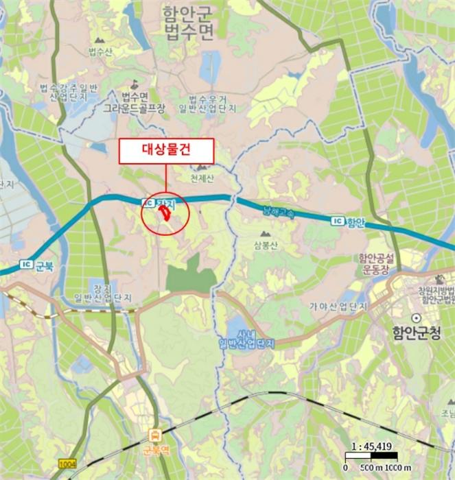´ë»ó¹°°ÇÀº °æ»ó³²µµ ÇԾȱº ±ººÏ¸é ÀåÁö¸® "ÀåÁöTG" ³²µ¿Ãø¿¡ À§Ä¡Çϸç, ÁÖÀ§´Â °øÀå¿ëÁö