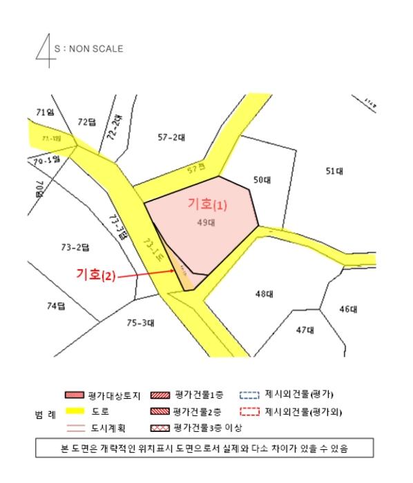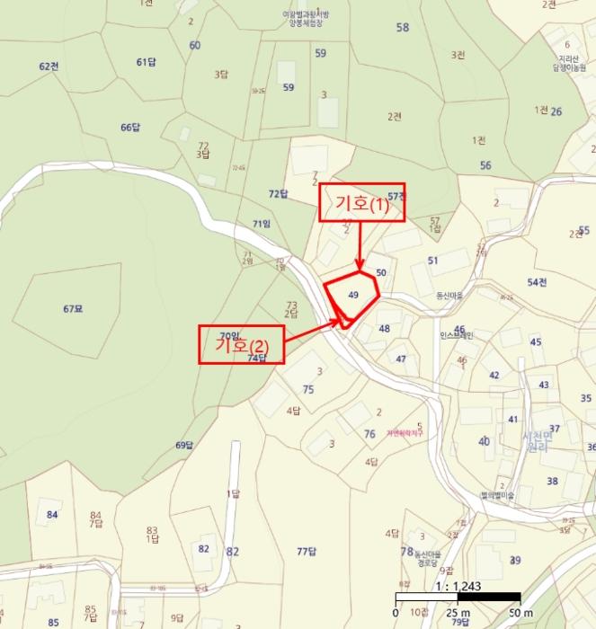 ±âÈ£(1),(2) ÅäÁö´Â ÀÎÁ¢Çϰí ÀÖÀ¸¸ç, ³²¼ÃøÀ¸·Î ³ëÆø ¾à 4¹ÌÅÍÀÇ µµ·Î¿Í Á¢Çϰí, ºÏ¼ÃøÀ¸·Î ³ëÆø ¾à 3¹ÌÅÍÀÇ µµ·Î¿Í Á¢Çϰí, ³²µ¿ÃøÀ¸·Î ³ëÆø ¾à 2¹ÌÅÍÀÇ µµ·Î¿Í Á¢ÇÔ.