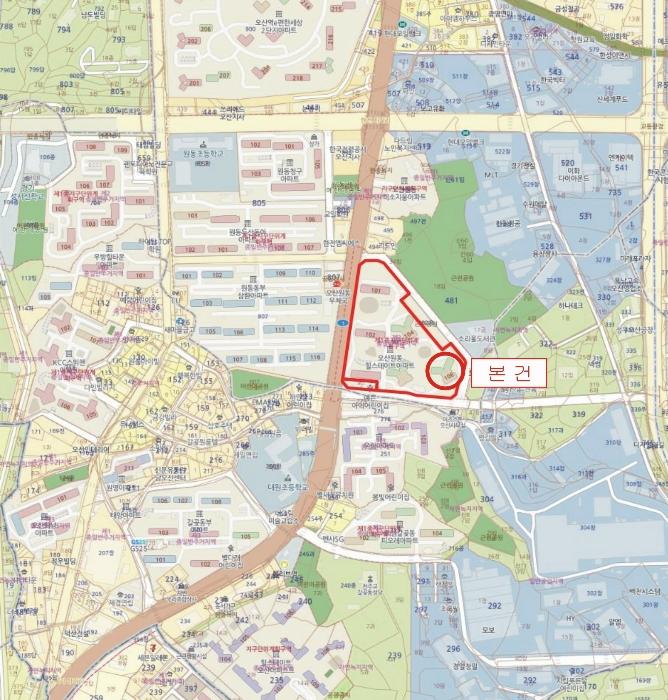 º»°ÇÀº ¿À»ê½Ã ¿øµ¿ ¼ÒÀç "¼Ò¸®¿ïµµ¼°ü" ¼Ãø µµ·Î °Ç³ÊÆí¿¡ À§Ä¡Çϸç, º»°Ç ÁÖÀ§´Â ¾ÆÆÄÆ® ¹× ±Ù¸°½Ã¼³, °øÀå µîÀÌ È¥ÀçÇÏ´Â Áö¿ªÀÓ.