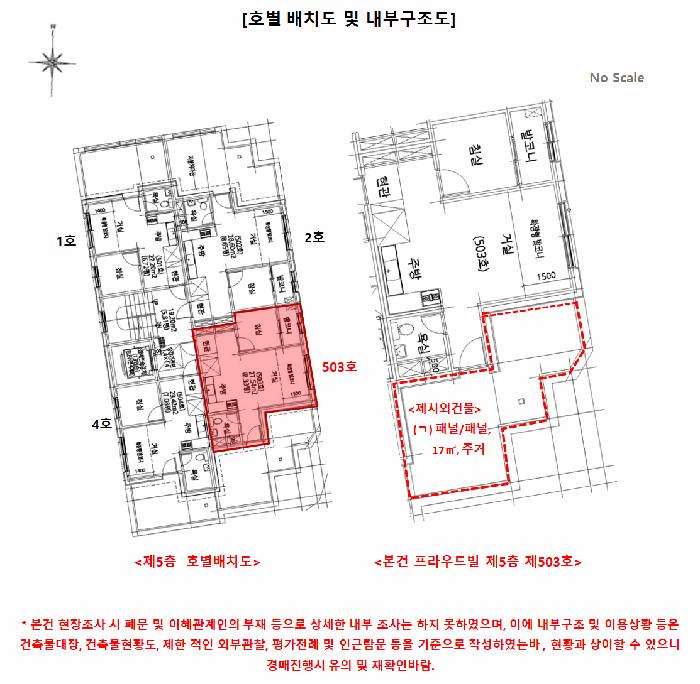 - º»°Ç Á¦½Ã¿Ü°Ç¹° (¤¡)Àº ÁýÇÕ°ÇÃ๰´ëÀå¿¡ µîÀçµÈ À§¹Ý°ÇÃ๰ ¸éÀû°ú(17§³) ¸ñÃø ¹× °ÇÃ๰ÇöȲµµ µîÀ» ÅëÇÏ¿© °³·«ÀûÀ¸·Î »êÃâÇÑ ¸éÀûÀÌ À¯»çÇÏ¿© ÁýÇÕ°ÇÃ๰´ëÀå¿¡ µîÀçµÈ À§¹Ý°ÇÃ๰ ¸éÀûÀ¸·Î ±âÁØÇÏ¿´À¸¸ç, °æ¸Å ÁøÇà ½Ã ¼ÒÀ¯±Ç ¹× ±âŸ ±Ç¸®°ü°è, ¿ø»óȸº¹¸í·É ¹× ÀÌÇà°Á¦±Ý ºÎ°ú ¿©ºÎ µîÀº ¹Ýµå½Ã ÀçÈ®ÀÎÇϽñ⠹ٶ÷.