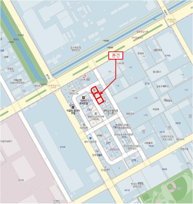 - 575-1, 575-2, 575-3: ÀϹݻó¾÷Áö¿ª, Áß·Î1·ù(Æø 20m-25m)(Á¢ÇÕ), °¡Ãà»çÀ°Á¦Çѱ¸¿ª(ÀüºÎ