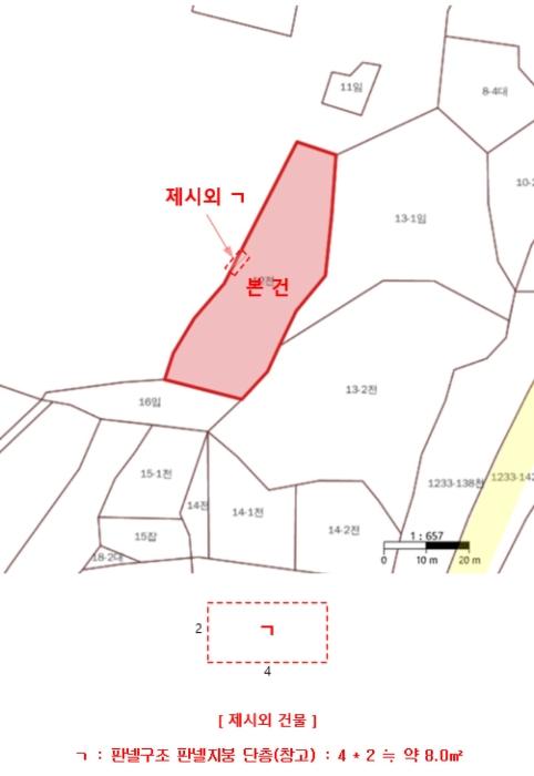 º»°Ç ÁöÀû°æ°è¼± »ó¿¡ Á¦½Ã¿Ü â°í(¤¡)°¡ ¼ÒÀçÇϳª ±× ±¸Á¶, ±Ô¸ð, À§Ä¡ µîÀ¸·Î º¸¾Æ º»°Ç