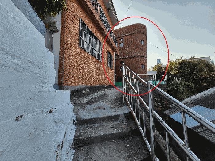 º»°Ç µ¿ÃøÀ¸·Î ³ëÆø ¾à 2~2.5 ¹ÌÅÍ ÆøÀÇ °è´Üµµ·Î¿¡ Á¢Çϰí ÀÖÀ½.