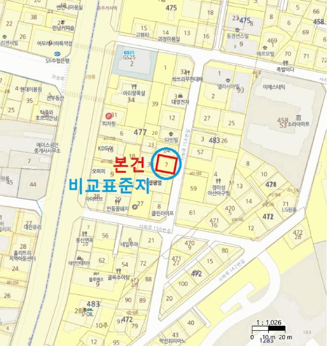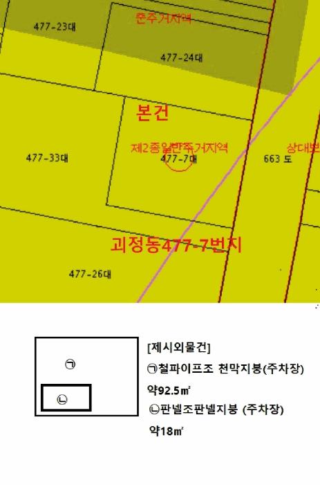 º»°Ç ÅäÁö»ó¿¡´Â ¼ÒÀ¯ÀÚ ¹Ì»óÀÇ Ã¶°Å¿ëÀÌÇÑ °Ç¹°(¨±Ã¶ÆÄÀÌÇÁÁ¶ õ¸·ÁöºØ(ÁÖÂ÷Àå) : ¾à 92.5§³) ¹× ¨²ÆÇ³ÚÁ¶ ÆÇ³ÚÁöºØ(ÁÖÂ÷Àå) : ¾à 18§³)ÀÌ ¼ÒÀçÇϳª ±¸Á¶, ±Ô¸ð, ¿ëµµ µîÀ¸·Î º¸¾Æ º»°Ç ÅäÁöÀÇ »ç¿ë¼öÀÍóºÐ µî¿¡ ¿µÇâÀÌ ¹Ì¹ÌÇÒ °ÍÀ¸·Î ÆÇ´ÜµÇ´Â¹Ù ÅäÁö¸¦ Á¤»óÆò°¡ÇÏ¿´À¸¸ç, º°µµ·Î Á¦½Ã¿Ü °Ç¹°¸¦ °¨Á¤Æò°¡ÇÏ¿´À¸´Ï Àϰý°æ¸Å¿©ºÎ µîÀ» ÀçÈ®ÀÎÇϽñ⠹ٶø´Ï´Ù.