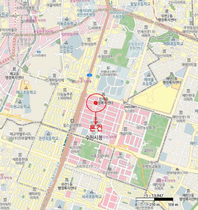 º»°ÇÀº °æ±âµµ ¼ö¿ø½Ã ÆÈ´Þ±¸ Àΰ赿 ¼ÒÀç ""¼ö¿ø½Ãû"" ºÏÃø Àαٿ¡ À§Ä¡Çϸç ÁÖÀ§´Â À½½ÄÁ¡