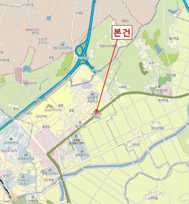 ³²µ¿ÃøÀ¸·Î Æø ¾à30¹ÌÅÍ ³»¿Ü, ³²¼ÃøÀ¸·Î Æø ¾à10¹ÌÅÍ ³»¿ÜÀÇ ¾Æ½ºÆÈÆ® Æ÷Àåµµ·Î¿¡ Á¢ÇÏ°í ³²µ¿Ãø µµ·Î¸¦ ÁÖ ÃâÀԷηΠÀÌ¿ëÇÔ.