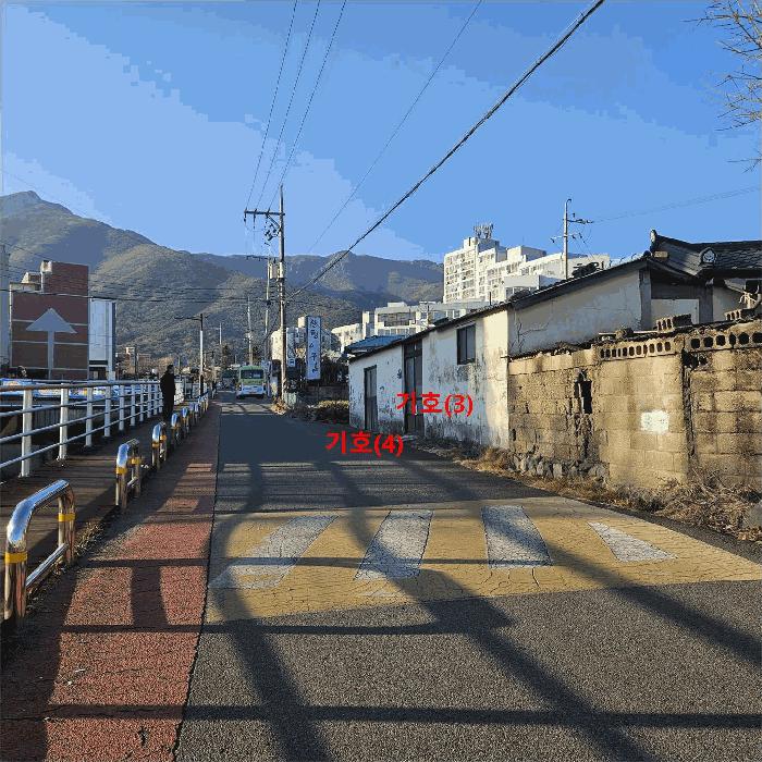 ±âÈ£(1)Àº ºÏÃøÀ¸·Î Æø ¾à 10¹ÌÅÍ ³»¿Ü, ±âÈ£(3)Àº ³²¼ÃøÀ¸·Î Æø ¾à 5¹ÌÅÍ ³»¿ÜÀÇ µµ·Î¿¡ Á¢ÇÏ¸ç ±âÈ£(4)´Â ÀÚü°¡ ÇöȲµµ·ÎÀÌ¸ç Æø ¾à 4~6¹ÌÅÍÀÇ µµ·Î¿¡ ¿¬°áµÇ¾î ÀÖ½À´Ï´Ù.