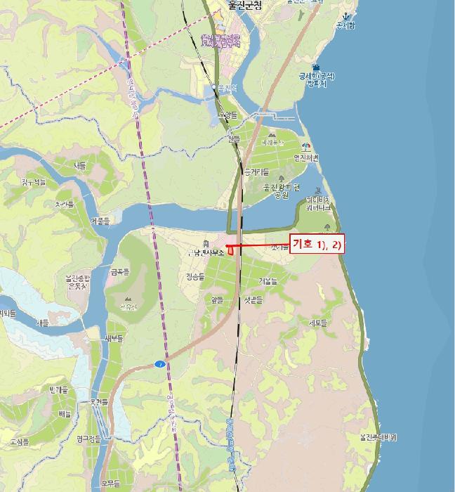 ¡¤±âÈ£ 1) : ºÏµ¿ÃøÀ¸·Î Æø ¾à 6mÀÇ Æ÷Àåµµ·Î¿Í Á¢ÇÔ. ¡¤±âÈ£ 2) : ºÏÃøÀ¸·Î Æø ¾à 6m, µ¿ÃøÀ¸·Î Æø ¾à 2~3mÀÇ Æ÷Àåµµ·Î¿Í Á¢ÇÔ.