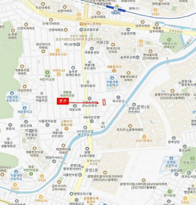 º»°ÇÀº ¼¿ïƯº°½Ã ±¸·Î±¸ °³ºÀµ¿ ¼ÒÀç ""¼¿ï°³ºÀÃʵîÇб³"" ³²¼Ãø Àαٿ¡ À§Ä¡Çϸç, ÁÖÀ§´Â ´Üµ¶ÁÖÅÃ, ´Ù¼¼´ëÁÖÅÃ, ±Ù¸°»ýȰ½Ã¼³ µîÀÌ È¥ÀçÇÏ´Â Áö´ë·Î¼ Á¦¹Ý ÁÖÀ§È¯°æÀº º¸ÅëÀÓ.