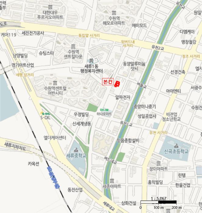 º»°ÇÀº °æ±âµµ ¼ö¿ø½Ã ±Ç¼±±¸ ¼¼·ùµ¿ ¼ÒÀç ¼¼·ùÁßÇб³ ºÏµ¿Ãø Àαٿ¡ À§Ä¡Çϸç, ºÎ±ÙÀº ´Ù¼¼´ë