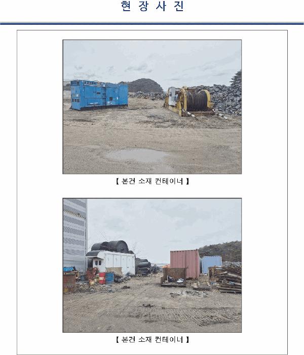 ±âÈ£(1), (3) ÅäÁö¿¡ À̵¿ÀÌ °¡´ÉÇÑ ÄÁÅ×ÀÌ³Ê ¼ö µ¿°ú °¢Á¾ Æó±â¹° ¹× ¼®Àç°¡ ÀûÄ¡µÇ¾î ÀÖ´Â ¹Ù, À¯ÀÇ ¿äÇÔ.