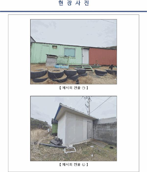 - ±âÈ£(2) ¹× ÀÎÁ¢Áö¿¡ °ÉÃÄ ¼ÒÀçÇÏ´Â º°µµÀÇ Á¦½Ã¿Ü °Ç¹°ÀÌ ¼ÒÀçÇϳª ŸÀμÒÀ¯·Î ÁÖÀåÇÏ´Â ¹Ù, Æò°¡ÇÏÁö ¾Ê¾ÒÀ½.