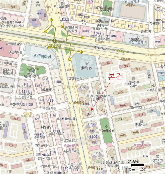 º»°ÇÀº °æ±âµµ ºÎõ½Ã ¿ø¹Ì±¸ Áßµ¿ ¼ÒÀç "½ÅÁßµ¿¿ª(7È£¼±)" ³²µ¿Ãø Àαٿ¡ À§Ä¡Çϸç, ÁÖÀ§´Â ¾÷¹«½Ã¼³, ÆÇ¸Å½Ã¼³, ±Ù¸°»ýȰ½Ã¼³ ¹× ¾ÆÆÄÆ® µîÀ¸·Î Çü¼ºµÇ¾î ÀÖÀ½.