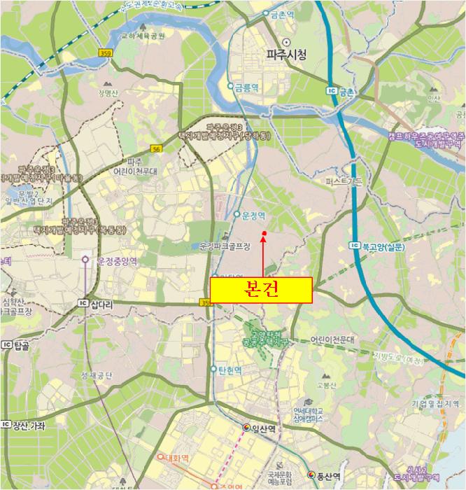 º»°ÇÀº °æ±âµµ ÆÄÁֽà »óÁö¼®µ¿ ¼ÒÀç °æÀÇÁß¾Ó¼± "¿îÁ¤¿ª" ³²µ¿Ãø Àαٿ¡ À§Ä¡Çϸç, º»°Ç ÀαÙÀº ¿¬¸³ÁÖÅà ¹× ´Ù¼¼´ëÁÖÅÃ, ±Ù¸°»ýȰ½Ã¼³ µîÀÌ È¥ÀçÇÏ´Â Áö¿ªÀ¸·Î ÁÖº¯ ȯ°æÀº ¹«³ÇÔ.