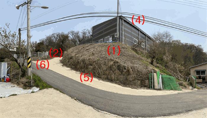 ±âÈ£(1,2): ¼ÃøÀ¸·Î ±âÈ£(5,6)ÅäÁö¸¦ ÀÌ¿ëÇÑ Æø3~4¹ÌÅÍ Á¤µµÀÇ Æ÷Àåµµ·Î¿¡ Á¢ÇÔ.