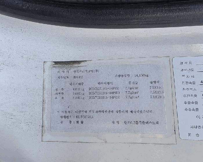 ÀÚµ¿Â÷µî·Ï¿øºÎ »ó 2011³â½Ä(Á¦ÀÛÀÏÀÚ : 2011³â 12¿ù 6ÀÏ)À̸ç, ÇöÀåÁ¶»ç½Ã °è±âÆÇ»ó ÁÖÇà°Å¸®´Â 611,390kmÀÓ.