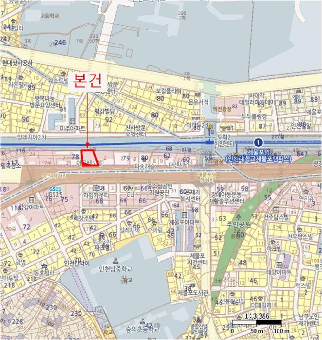 º»°ÇÀº ÀÎõ±¤¿ª½Ã ¹ÌÃßȦ±¸ ¼þÀǵ¿ ¼ÒÀç "Á¦¹°Æ÷¿ª(¼öµµ±Ç1È£¼±)" ¼Ãø Àαٿ¡ À§Ä¡Çϸç, ÁÖÀ§´Â ¿ÀÇǽºÅÚ, °øµ¿ÁÖÅà ¹× ±Ù¸°»ýȰ½Ã¼³ µîÀ¸·Î Çü¼ºµÇ¾î ÀÖÀ½.