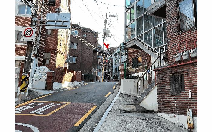 ºÏµ¿ÃøÀ¸·Î ³ëÆø ¾à 6¹ÌÅÍ µµ·Î¿¡, ºÏ¼ÃøÀ¸·Î Æø ¾à 4¹ÌÅÍ ¸·´Ù¸¥ µµ·Î¿¡ Á¢Çϰí ÀÖÀ½.