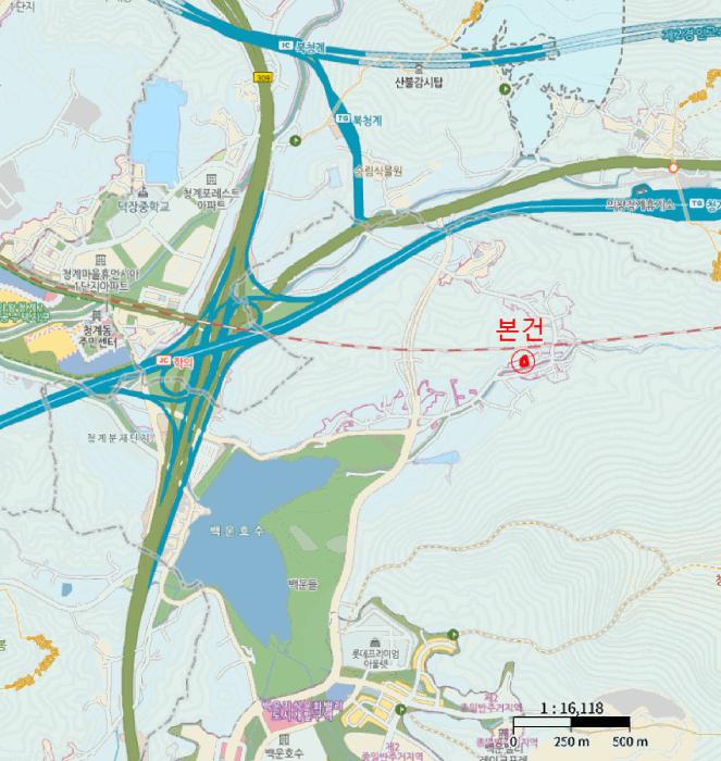 °æ±âµµ Àǿսà ÇÐÀǵ¿ ¼ÒÀç ""¹é¿îÈ£¼ö"" ºÏµ¿Ãø ±Ù°Å¸®¿¡ À§Ä¡Çϸç, ÁÖÀ§´Â ´Ù¼¼´ëÁÖÅÃ, ´Üµ¶ÁÖÅÃ, ³ó°æÁö ¹× ±Ù¸°»ýȰ½Ã¼³ µîÀÌ È¥ÀçÇÏ´Â Áö¿ªÀ¸·Î¼, Á¦¹Ý ÁÖÀ§È¯°æÀº º¸Åë½ÃµÊ.
