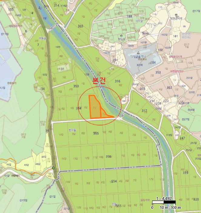 ³ª. °¡»ê¸® 354-1: ºÎÁ¤ÇüÀÇ ÅäÁö·Î, ÇöȲ ""ÈÞ°æÁö"" »óÅÂÀÓ.