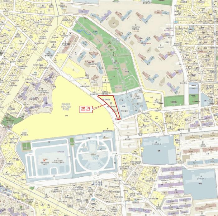 º»°ÇÀº ÀÎõ±¤¿ª½Ã ¹ÌÃßȦ±¸ ÇÐÀ͵¿ ¼ÒÀç ""ÀÎõÁö¹æ¹ý¿ø"" ºÏµ¿Ãø Àαٿ¡ À§Ä¡Çϸç, ÁÖÀ§´Â ´Üµ¶ÁÖÅÃ, °øµ¿ÁÖÅÃ, ¾÷¹«½Ã¼³ ¹× ±Ù¸°»ýȰ½Ã¼³ µîÀ¸·Î Çü¼ºµÈ Áö´ëÀÓ.