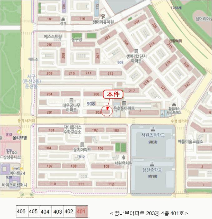 º»°ÇÀº ´ëÀü±¤¿ª½Ã ¼±¸ µÐ»êµ¿ ¼ÒÀç '¼¿øÃʵîÇб³' ºÏ¼Ãø Àαٿ¡ À§Ä¡ÇÏ´Â ²Þ³ª¹«¾ÆÆÄÆ® Á¦203µ¿ Á¦4Ãþ Á¦401È£·Î¼, ÁÖÀ§´Â ´ë±Ô¸ð ¾ÆÆÄÆ®´ÜÁö, ±Ù¸°»ýȰ½Ã¼³ ¹× °ø¿ø, °¢±Þ Çб³ µîÀÌ ¼ÒÀçÇÏ¿© Á¦¹Ý ÁÖÀ§È¯°æÀº º¸Åë½Ã µÊ.