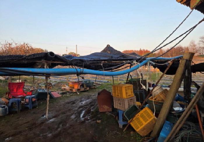 ±âÈ£(1) Áö»ó¿¡ â°í·Î ÀÌ¿ëÁßÀÎ Á¦½Ã¿Ü°Ç¹°(±âÈ£¨±)°ú °è»ç(ÆÄÀÌÇÁÁ¶ õ¸·ÁöºØ ¾à21§³)°¡ ¼ÒÀçÇϸç, ±âÈ£(1,2) Áö»ó¿¡ Æ÷µµ³ª¹«¿Í À̸¦ À§ÇÑ ÁöÁÖ ¹× °ü¼ö¼³ºñ°¡ ¼ÒÀçÇÔ. ´Ù¸¸ Æ÷µµ ³ª¹«, ÁöÁÖ ¹× °ü¼ö¼³ºñ, °è»ç µîÀº ¼ÒÀ¯±ÇÀÌ ºÒ¸íÈ®ÇÔ.