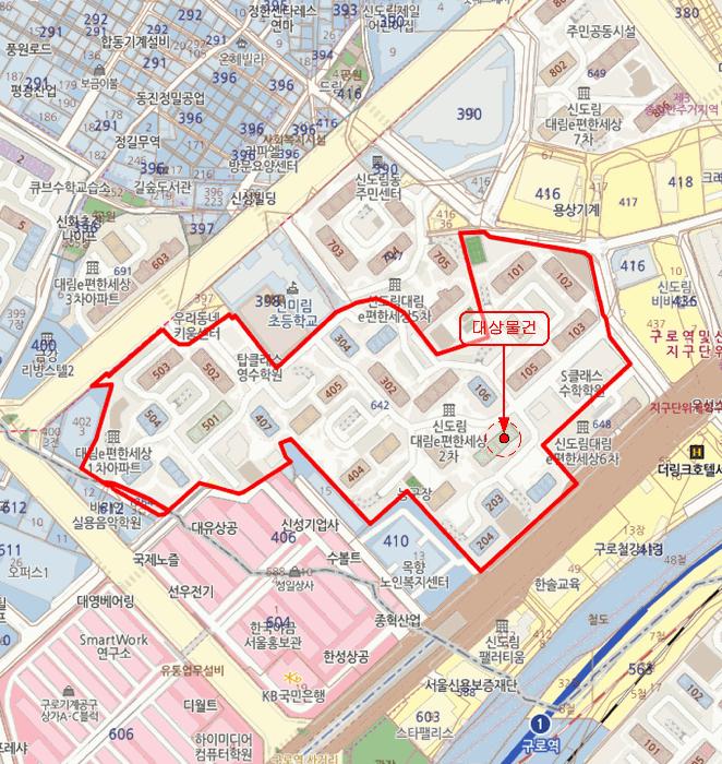 ´ë»ó¹°°ÇÀº ¼¿ïƯº°½Ã ±¸·Î±¸ ½Åµµ¸²µ¿ ¼ÒÀç "¼¿ï½Å¹Ì¸²ÃʵîÇб³" ³²µ¿Ãø Àαٿ¡ À§Ä¡Çϸç, ÁÖÀ§´Â ¾ÆÆÄÆ®´ÜÁö, ´Ù¼¼´ëÁÖÅÃ, ¿ÀÇǽºÅÚ, °ø±¸»ó°¡/À¯Åë´ÜÁö, »ó¾÷¾÷¹«¿ëºôµù, ±Ù¸°»ýȰ½Ã¼³ µîÀÌ È¥ÀçÇÏ´Â Áö¿ªÀÓ.
