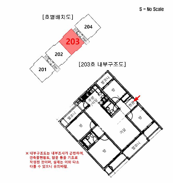 ´ë»ó¹°°ÇÀÇ °ÇÃ๰ÇöȲµµ(203È£ Æò¸éµµ)¿¡´Â Á¿찡 ¹Ù²ï ³»ºÎ±¸Á¶°¡ µµ½ÃµÇ¾î ÀÖÀ¸´Ï Âü°íÇÏ½Ã±æ ¹Ù¶÷.