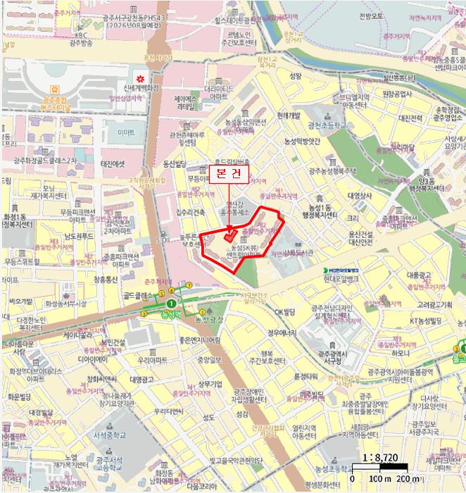 º»°ÇÀº ±¤ÁÖ±¤¿ª½Ã ¼±¸ ³ó¼ºµ¿ ¼ÒÀç ³ó¼º¿ª ºÏµ¿Ãø Àαٿ¡ À§Ä¡Çϰí ÁÖº¯Àº ¾ÆÆÄÆ®´ÜÁö, ´Üµ¶ÁÖÅÃ, ±Ù¸°»ýȰ½Ã¼³ µîÀÌ ¼ÒÀçÇÏ´Â Áö´ëÀÓ.