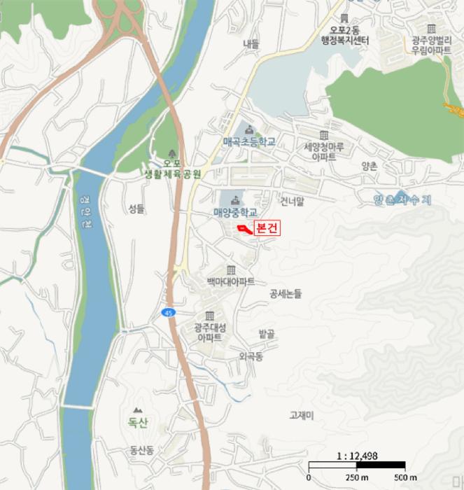 º»°ÇÀº °æ±âµµ ±¤Áֽà ¾ç¹úµ¿ ¼ÒÀç ¸Å¾çÁßÇб³ ³²Ãø Àαٿ¡ À§Ä¡Çϸç, ºÎ±ÙÀº ´ÜÁöÇü ´Ù¼¼´ë