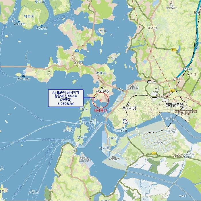 ´ë»ó¹°°ÇÀº Àü¶ó³²µµ ½Å¾È±º ¾ÐÇØÀ¾ Àå°¨¸® ¼ÒÀç '±¸µµ¼±ÂøÀå' ºÏÃø Àαٿ¡ À§Ä¡Çϸç, Àαٿ¡´Â ´Üµ¶ÁÖÅÃ, ³ó°æÁö, ÀÚ¿¬¸² µîÀÌ ¼ÒÀçÇÏ´Â ÇØ¾È ¾ß»êÁö´ëÀÓ.